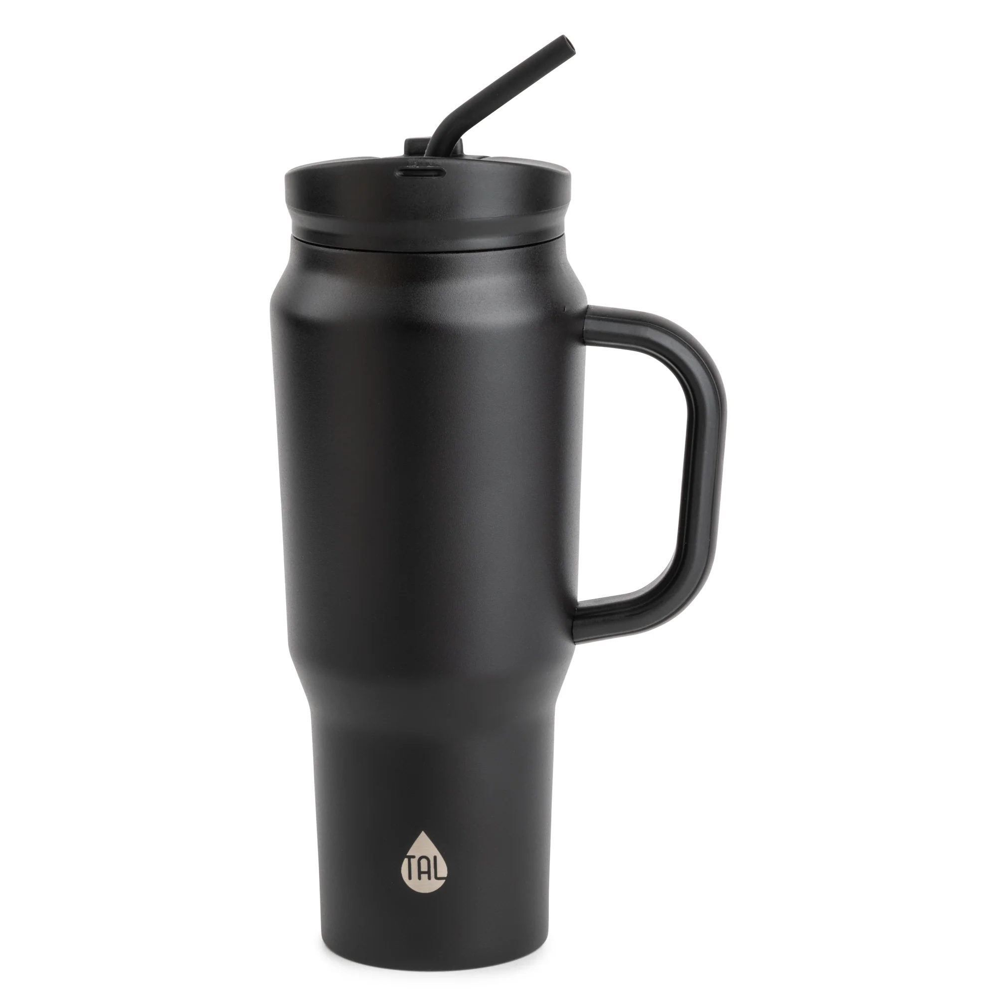 The TAL Stainless Steel Basin Mug, 30 oz is designed to keep your drinks at the perfect temperature, whether you're on a long commute, hitting the road for a trip, or simply enjoying a day out. The double-wall stainless steel construction keeps drinks cold for up to 24 hours and hot for up to 8 hours. Featuring a reusable silicone straw and a secure leak-proof lid, this mug is built for durability and convenience. Its condensation-free exterior keeps your hands and surfaces dry, while the sturdy handle makes it easy to carry on the go. Plus, it fits most cupholders, making it perfect for all your adventures.